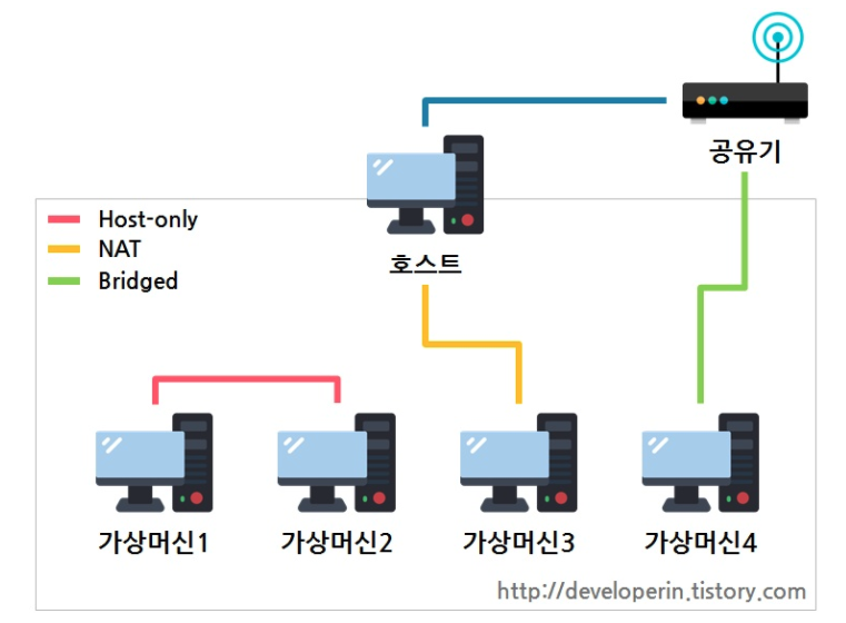 즉, 공유기가 호스트 PC와 가상머신에 같은 네트워크 대역의 IP를 할당하기 때문에