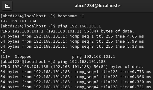 호스트 PC와 게이트웨이에 핑을 보내보니 잘 통신이 된다