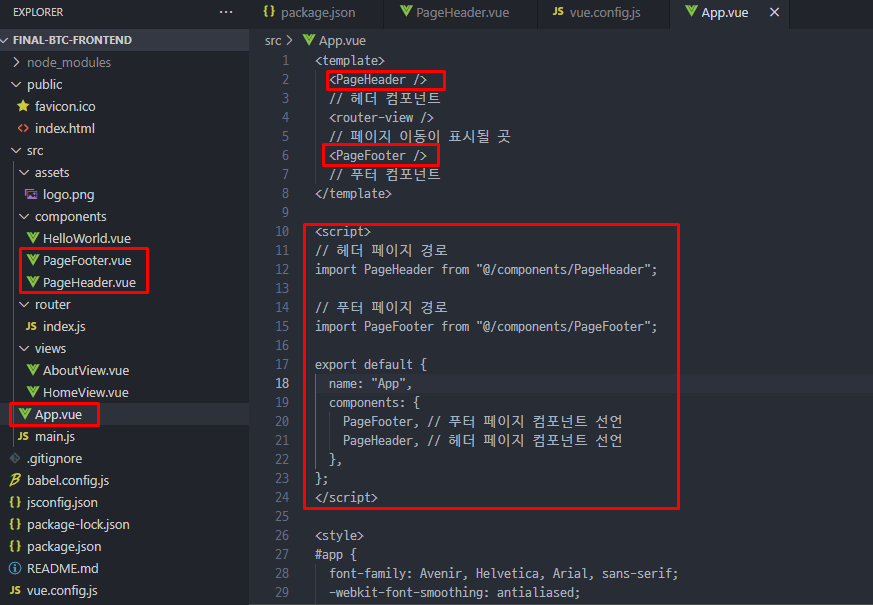 App.vue 파일은 최상위 컴포넌트이다. 본 어플리케이션의 전체 레이아웃은 상단 메뉴부와 컨텐츠부로 구성된다. 컨텐츠부는 vue.router를 통해 처리된다.